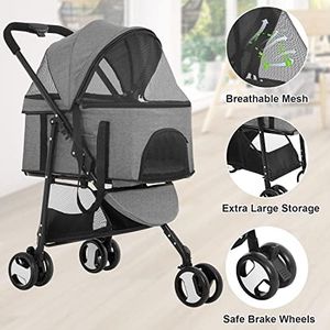 Storage and Extra FeaturesStorage and extra features refer to things like undercarriage baskets, cup holders, and pockets for carrying treats, water, or your belongings. Some strollers also have rain covers or removable pads for easy cleaning. If you plan to bring supplies or personal items on your walks, look for a stroller with enough storage and convenient extras to make your outings easier.